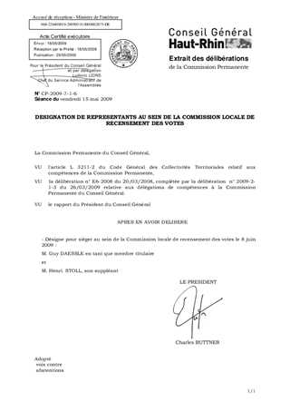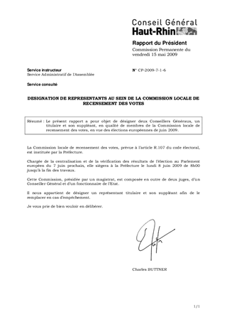 Le présent rapport a pour objet de désigner deux Conseillers Généraux, un titulaire et son suppléant, en qualité de membres de la Commission locale de recensement des votes, en vue des élections européennes de juin 2009.