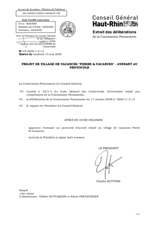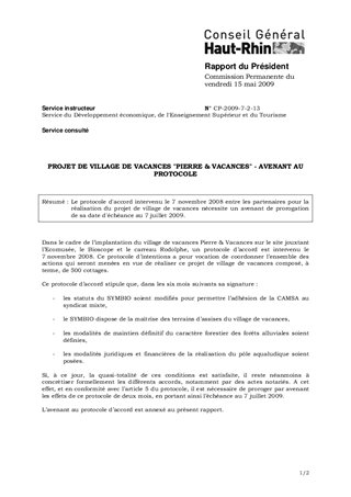 Le protocole d'accord intervenu le 7 novembre 2008 entre les partenaires pour la réalisation du projet de village de vacances nécessite un avenant de prorogation de sa date d'échéance au 7 juillet 2009.