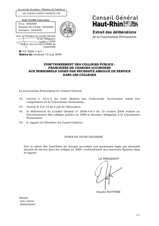 Le présent rapport a pour objet de fixer le montant des franchises de charges accordées aux personnels logés par nécessité absolue de service dans les collèges en 2009.