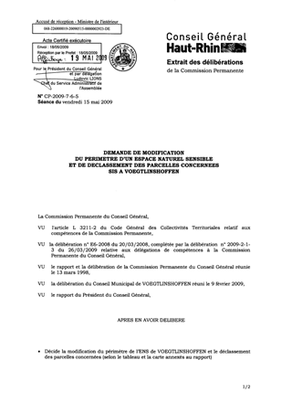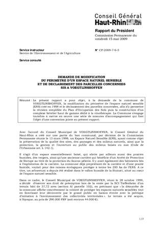 DEMANDE DE MODIFICATIONDU PERIMETRE D’UN ESPACE NATUREL SENSIBLEET DE DECLASSEMENT DES PARCELLES CONCERNEESSIS A VOEGTLINSHOFFEN