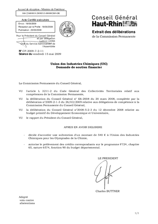 L'Union des Industries Chimiques (UIC) sollicite le soutien financier du Département pour l'organisation des Olympiades de la Chimie. Dans le cadre du présent rapport, il est proposé d'allouer une subvention de fonctionnement de 540 € pour cette manifestation.