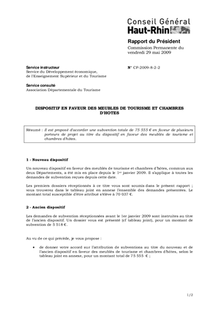 Il est proposé d'accorder une subvention totale de 75 555 € en faveur de plusieurs porteurs de projet au titre du dispositif en faveur des meublés de tourisme et chambres d'hôtes.