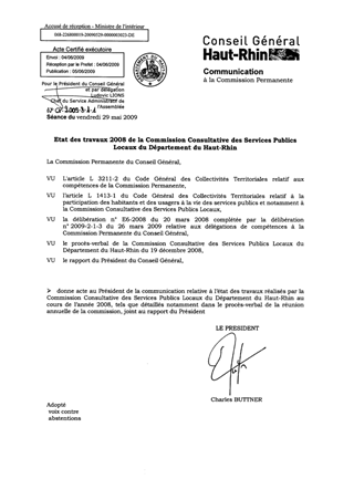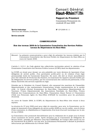 Etat des travaux 2008 de la Commission Consultative des Services Publics Locaux du Département du Haut-Rhin