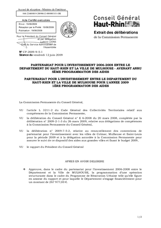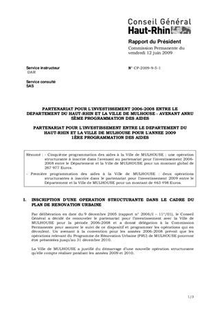 PARTENARIAT POUR L'INVESTISSEMENT 2006-2008 ENTRE LE DEPARTEMENT DU HAUT-RHIN ET LA VILLE DE MULHOUSE - AVENANT ANRU 5ÈME PROGRAMMATION DES AIDES PARTENARIAT POUR L'INVESTISSEMENT ENTRE LE DEPARTEMENT DU HAUT-RHIN ET LA VILLE DE MULHOUSE POUR L'ANNEE