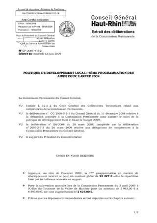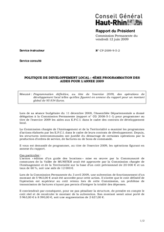 Programmation définitive, au titre de l'exercice 2009, des opérations de développement local telles qu'elles figurent en annexe du rapport pour un montant global de 95 854 Euros.