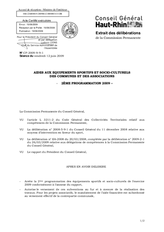AIDES AUX EQUIPEMENTS SPORTIFS ET SOCIO-CULTURELS DES COMMUNES ET DES ASSOCIATIONS - 2ÈME PROGRAMMATION 2009 -