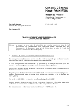 TRANSPORTS COMPLEMENTAIRES LOCAUX AFFECTATION DE CREDITS
