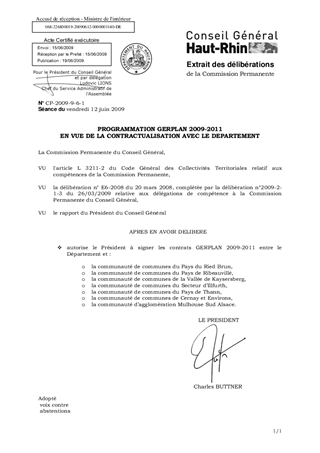 Il vous est proposé de prendre connaissance de la programmation GERPLAN 2009-2011 des communautés de communes du Pays du Ried Brun, du Pays de Ribeauvillé, de la Vallée de Kayserberg, du Secteur d’Illfurth, du Pays de Thann, de Cernay et Environs, de la communauté d’agglomération Mulhouse Sud Alsace ainsi que de leur projet de contrat 2009-2011 correspondant.