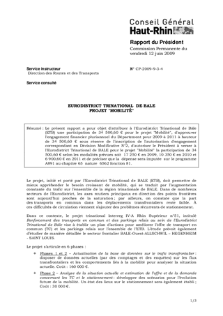 EURODISTRICT TRINATIONAL DE BALE PROJET "MOBILITÉ"