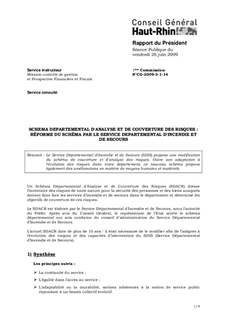 SCHEMA DEPARTEMENTAL D'ANALYSE ET DE COUVERTURE DES RISQUES : RÉFORME DU SCHÉMA PAR LE SERVICE DEPARTEMENTAL D'INCENDIE ET DE SECOURS