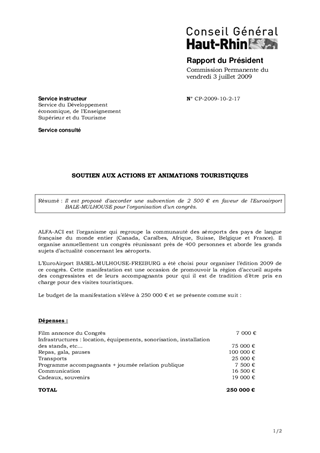 Il est proposé d'accorder une subvention de 2 500 € en faveur de l'Euroairport BALE-MULHOUSE pour l'organisation d'un congrès.