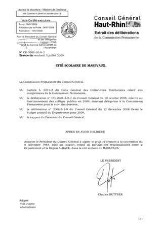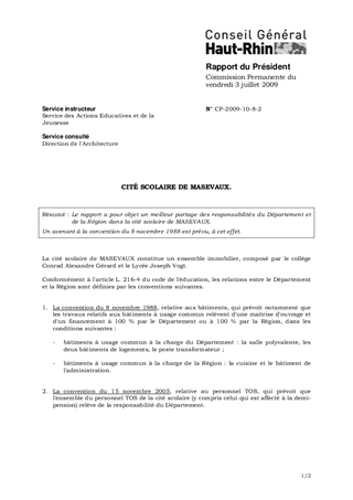 Le rapport a pour objet un meilleur partage des responsabilités du Département et de la Région dans la cité scolaire de MASEVAUX. Un avenant à la convention du 8 novembre 1988 est prévu, à cet effet.