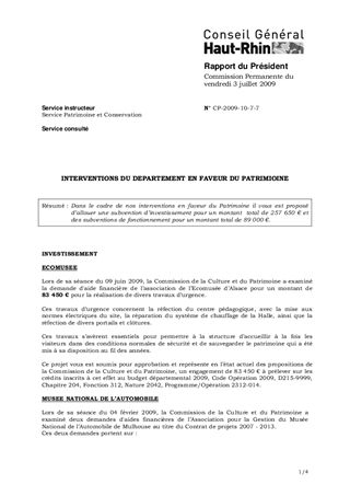 INTERVENTIONS DU DEPARTEMENT EN FAVEUR DU PATRIMIOINE