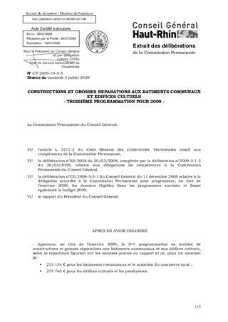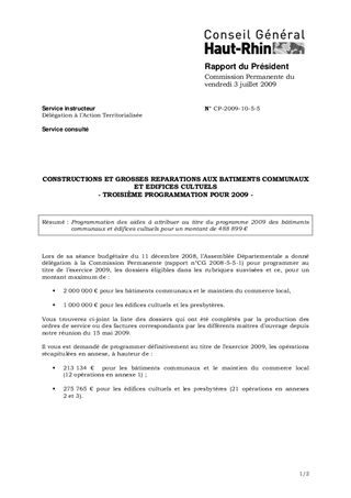 CONSTRUCTIONS ET GROSSES REPARATIONS AUX BATIMENTS COMMUNAUX ET EDIFICES CULTUELS - TROISIÈME PROGRAMMATION POUR 2009 -