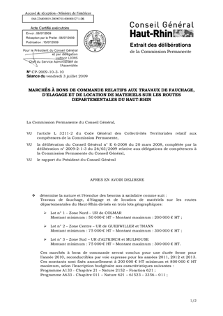 Le présent rapport a pour objet la mise en concurrence des marchés relatifs aux travaux de fauchage, d'élagage et de location de matériels sur les routes départementales du Haut-Rhin pour 2010 et leur reconduction par voie expresse pour 2011, 2012 et 2013.
