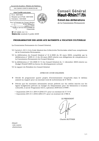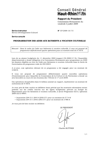 PROGRAMMATION DES AIDES AUX BATIMENTS A VOCATION CULTURELLE