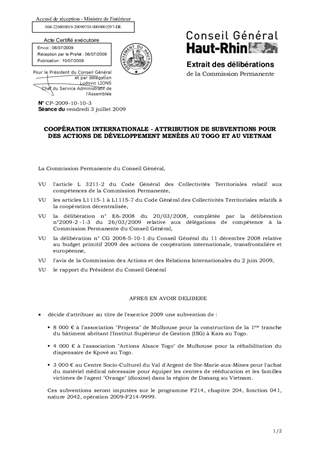 COOPÉRATION INTERNATIONALE - ATTRIBUTION DE SUBVENTIONS POUR DES ACTIONS DE DÉVELOPPEMENT MENÉES AU TOGO ET AU VIETNAM
