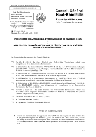 PROGRAMME DEPARTEMENTAL D’AMENAGEMENT DE RIVIERES (C414) APPROBATION DES OPÉRATIONS 2009 ET DÉLÉGATION DE LA MAÎTRISE D'OUVRAGE AU DÉPARTEMENT