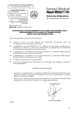 La Commission Permanente a délégation pour programmer les subventions d’investissements scolaires du premier degré, tout au long de l’année. Ce rapport concerne une quatrième série de subventions relatives au programme 2009, pour un montant de 39 472 €.