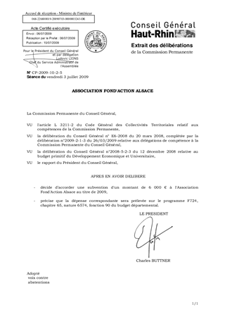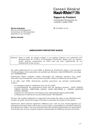 Dans le cadre du présent rapport, il est proposé d'allouer une subvention de fonctionnement de 6 000 € à l'Association Fond'Action Alsace pour les actions qu'elle souhaite entreprendre en 2009 ainsi que pour l'organisation de la traditionnelle remise de prix.
