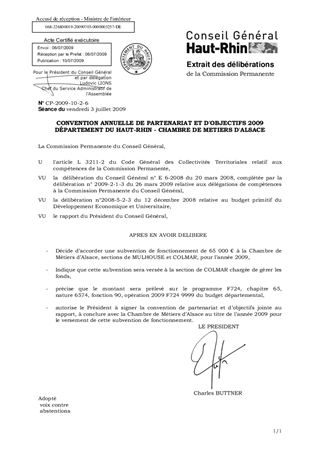 CONVENTION ANNUELLE DE PARTENARIAT ET D'OBJECTIFS 2009 DÉPARTEMENT DU HAUT-RHIN - CHAMBRE DE METIERS D'ALSACE