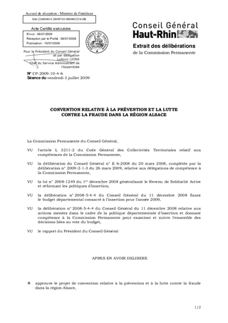 CONVENTION RELATIVE À LA PRÉVENTION ET LA LUTTE CONTRE LA FRAUDE DANS LA RÉGION ALSACE