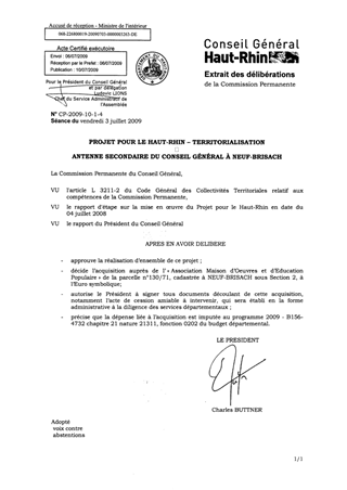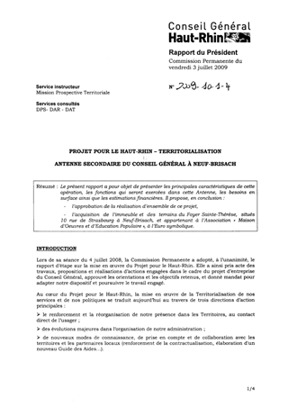 PROJET POUR LE HAUT-RHIN – TERRITORIALISATIONANTENNE SECONDAIRE DU CONSEIL GÉNÉRAL À NEUF-BRISACH