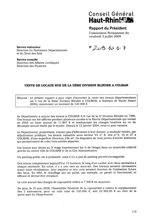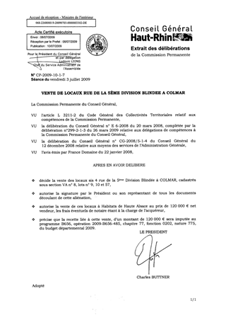 VENTE DE LOCAUX RUE DE LA 5ème DIVISION BLINDEE A COLMAR Resumé Pièces jointes DELIBERATION RAPPORT Assemblée : Commission Permanente Date : 03/07/2009 Rapporteur : Non défini Collectivité : Conseil départemental du Haut-Rhin Direction : Non défini Service : Service du Patrimoine et du droit des Sols Domaine : Aménagement du territoire Commission : Commission Permanente