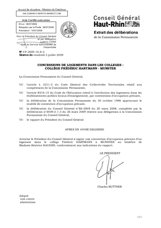 CONCESSIONS DE LOGEMENTS DANS LES COLLEGES : COLLÈGE FRÉDÉRIC HARTMANN - MUNSTER