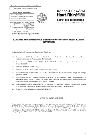 GARANTIE DÉPARTEMENTALE D'EMPRUNT ASSOCIATION CROIX-MARINE - WITTENHEIM