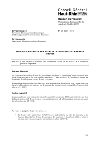 DISPOSITIF EN FAVEUR DES MEUBLES DE TOURISME ET CHAMBRES D'HOTES
