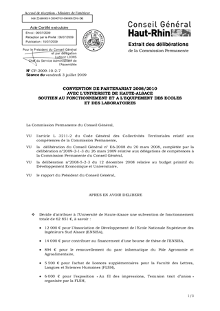 CONVENTION DE PARTENARIAT 2008/2010 AVEC L'UNIVERSITE DE HAUTE-ALSACE SOUTIEN AU FONCTIONNEMENT ET A L'EQUIPEMENT DES ECOLES ET DES LABORATOIRES