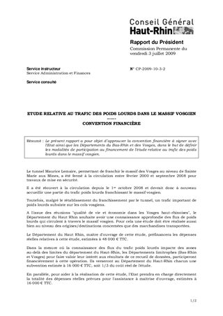ETUDE RELATIVE AU TRAFIC DES POIDS LOURDS DANS LE MASSIF VOSGIEN ------ CONVENTION FINANCIÈRE