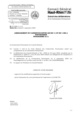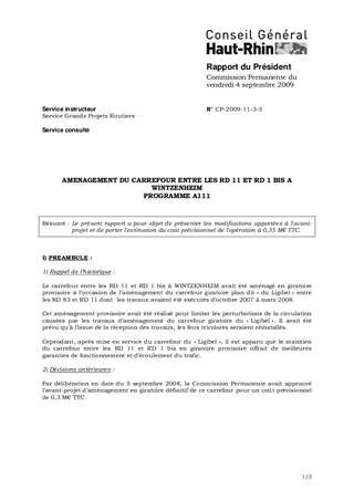AMENAGEMENT DU CARREFOUR ENTRE LES RD 11 ET RD 1 BIS A WINTZENHEIM PROGRAMME A111