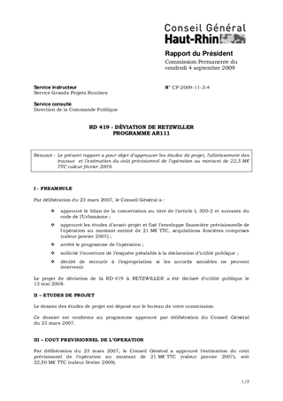 RD 419 - DÉVIATION DE RETZWILLER PROGRAMME AR111