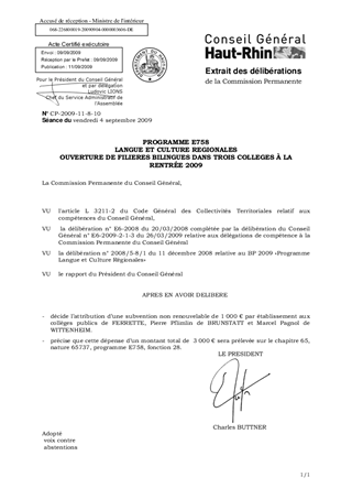 PROGRAMME E758 LANGUE ET CULTURE REGIONALES OUVERTURE DE FILIERES BILINGUES DANS TROIS COLLEGES À LA RENTRÉE 2009