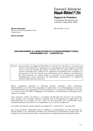 ENCOURAGEMENT À L’AGRICULTURE ET AU DEVELOPPEMENT RURAL (PROGRAMME C241 – CHAPITRE 65)