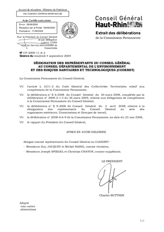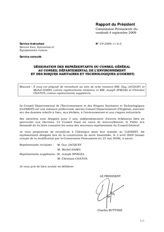 DÉSIGNATION DES REPRÉSENTANTS DU CONSEIL GÉNÉRAL AU CONSEIL DÉPARTEMENTAL DE L'ENVIRONNEMENT ET DES RISQUES SANITAIRES ET TECHNOLOGIQUES (CODERST)