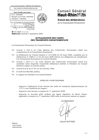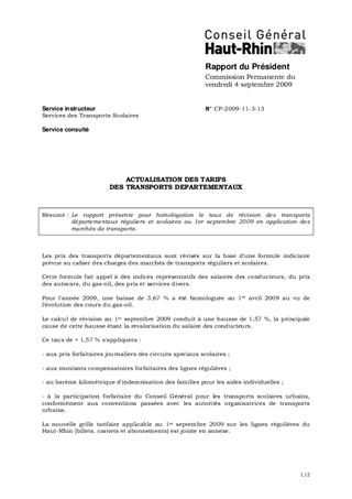 Le rapport présente pour homologation le taux de révision des transports départementaux réguliers et scolaires au 1er septembre 2009 en application des marchés de transports.