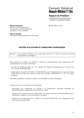 Il est proposé d'attribuer une subvention totale de 47 620 € en faveur de deux manifestations touristiques.