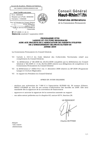 PROGRAMME E758 LANGUE ET CULTURE REGIONALES AIDE AUX PROJETS DE L’ASSOCIATION DE PARENTS D’ELEVES DE L’ENSEIGNEMENT BILINGUE ELTERN 68 ANNEE 2009