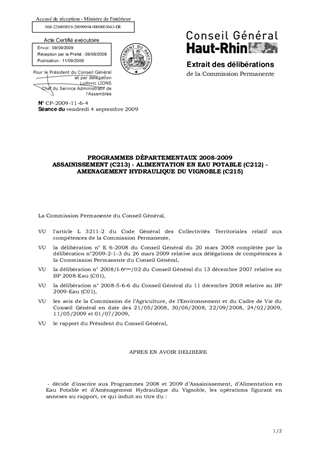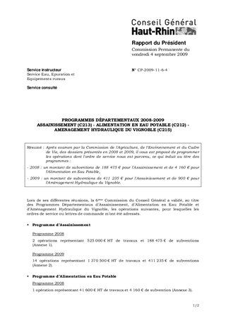 PROGRAMMES DÉPARTEMENTAUX 2008-2009 ASSAINISSEMENT (C213) - ALIMENTATION EN EAU POTABLE (C212) - AMENAGEMENT HYDRAULIQUE DU VIGNOBLE (C215)