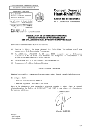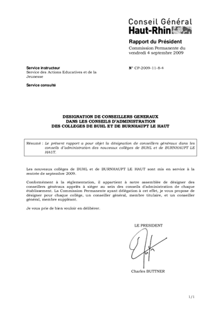 Le présent rapport a pour objet la désignation de conseillers généraux dans les conseils d’administration des nouveaux collèges de BUHL et de BURNHAUPT LE HAUT.