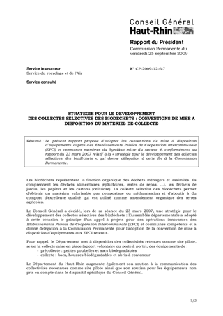 STRATEGIE POUR LE DEVELOPPEMENT DES COLLECTES SELECTIVES DES BIODECHETS : CONVENTIONS DE MISE A DISPOSITION DU MATERIEL DE COLLECTE