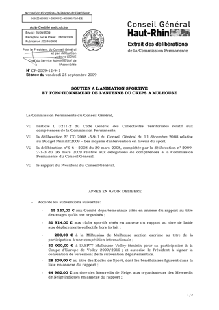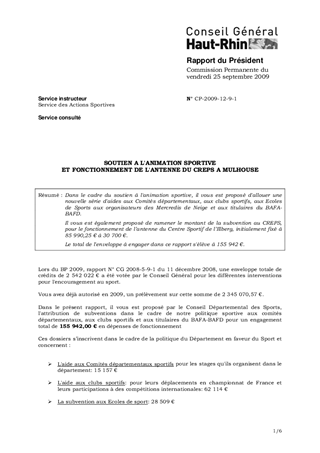 SOUTIEN A L'ANIMATION SPORTIVE ET FONCTIONNEMENT DE L'ANTENNE DU CREPS A MULHOUSE