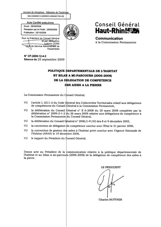 POLITIQUE DEPARTEMENTALE DE L’HABITATET BILAN A MI-PARCOURS (2006-2008)DE LA DELEGATION DE COMPETENCE DES AIDES A LA PIERRE