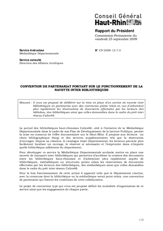 CONVENTION DE PARTENARIAT PORTANT SUR LE FONCTIONNEMENT DE LA NAVETTE INTER BIBLIOTHEQUES