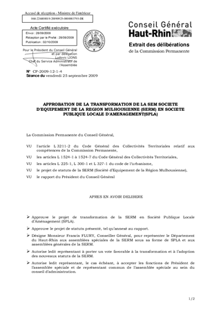 APPROBATION DE LA TRANSFORMATION DE LA SEM SOCIETE D'EQUIPEMENT DE LA REGION MULHOUSIENNE (SERM) EN SOCIETE PUBLIQUE LOCALE D'AMENAGEMENT(SPLA)