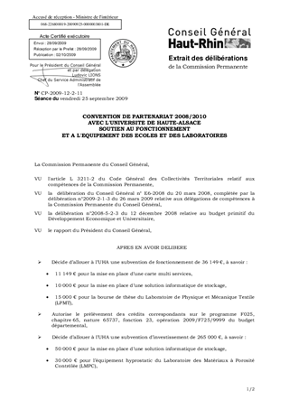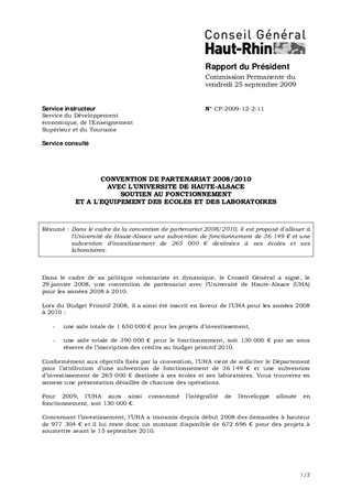CONVENTION DE PARTENARIAT 2008/2010 AVEC L'UNIVERSITE DE HAUTE-ALSACE SOUTIEN AU FONCTIONNEMENT ET A L'EQUIPEMENT DES ECOLES ET DES LABORATOIRES