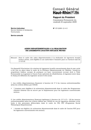 AIDES DEPARTEMENTALES A LA REALISATION DE LOGEMENTS LOCATIFS SOCIAUX PRIVES